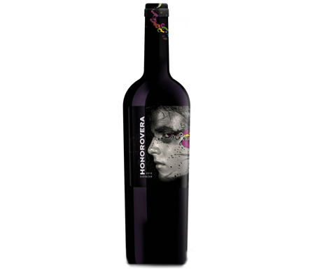 Honoro Vera, vino 100% garnacha de terreno pizarroso y rendimientos muy bajos, posee un color picota oscuro y aromas a frutos maduros con sensaciones balsámicas.